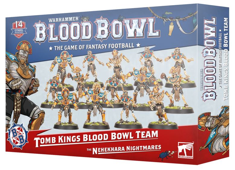 Die uralten Herrscher von Nehekhara erheben sich aus dem Wüstensand und bringen einen Hauch vergessener Größe auf das Blood Bowl-Feld. Dieses Team kombiniert technische Finesse mit strenger Disziplin – jeder Spieler hat eine klare Rolle, und wenn ihre Taktiken aufgehen, ist der Sieg fast sicher. Das Team besteht aus 14 mehrteiligen Kunststoffminiaturen: zwei Gruftkönige-Blitzer, zwei Gruftkönige-Werfer, vier Gruftwächter und sechs Skelett-Feldspieler. Dazu enthält das Set zwei doppelseitige Blood Bowl-Münzen, zwei Spielzug- und Wiederholungswurfmarker sowie vier Bälle.