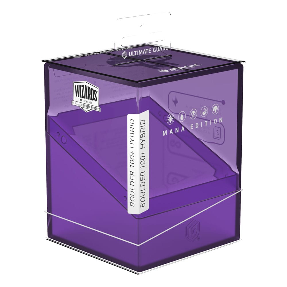 - Ultimate Guards Boulder 100+ Hybrid verbindet den komplett transparenten Deckel des Boulder Clear mit einem Soft-Touch-Unterteil im Stil des originalen Boulders. Die offiziell lizenzierte MTG-Deck-Box lässt sich bequem öffnen, bietet aber dank eines stabilen Gehäuses und sicheren Verschlusses zuverlässigen Schutz für eure Karten. Der Boulder 100+ Hybrid fasst bis zu 100 Karten in doppelter Schutzhülle und ist für alle Magic: The Gathering-Formate wie z.B. Commander, Standard oder Modern geeignet.