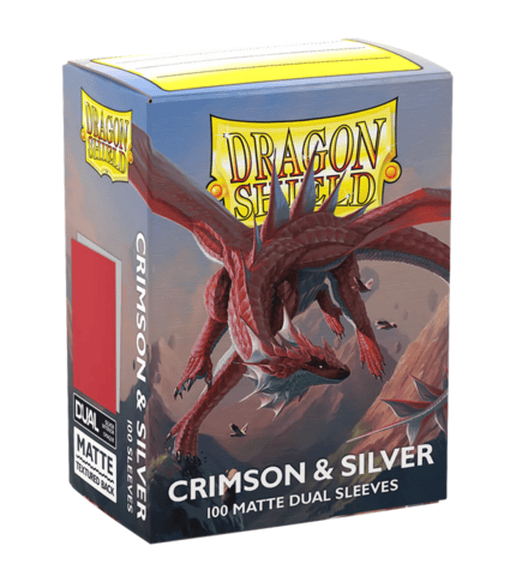 - Dragon Shield Dual Matte Crimson / Silver 100 protective Sleeves (Clear front and dual matte Crimson back / Silver inside)