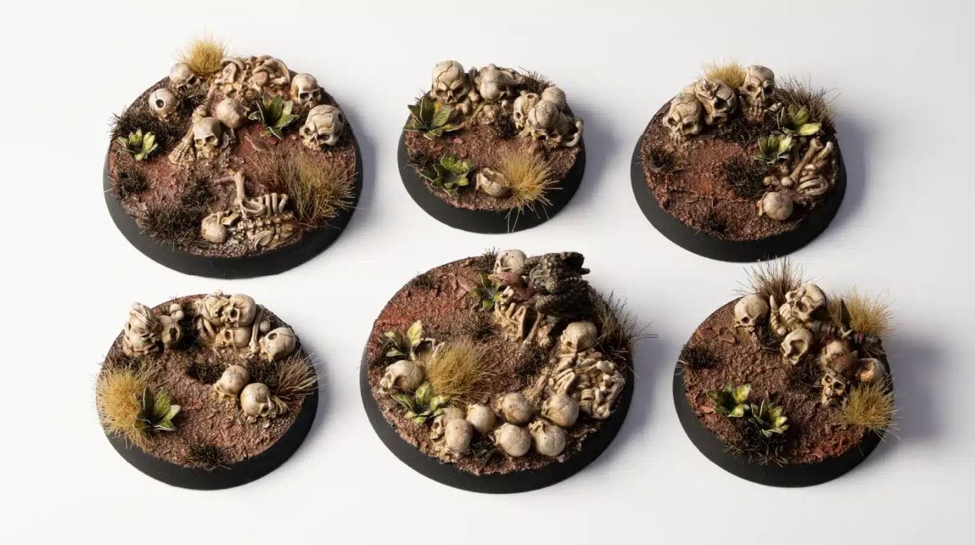 - ie Skulls & Bones Basing Bits werden als kompletter Spritzguss geliefert, sind in ultrahoher Auflösung 3D-gedruckt und äußerst detailreich. Diese Teile bestehen aus hartem Harz und wurden speziell dafür entwickelt, damit du vergessene Schlachtfelder, chaotische Reiche, dunkle Friedhöfe oder barbarische Ödlande für die Sockel und das Gelände deiner Tabletop-Miniaturen gestalten kannst.