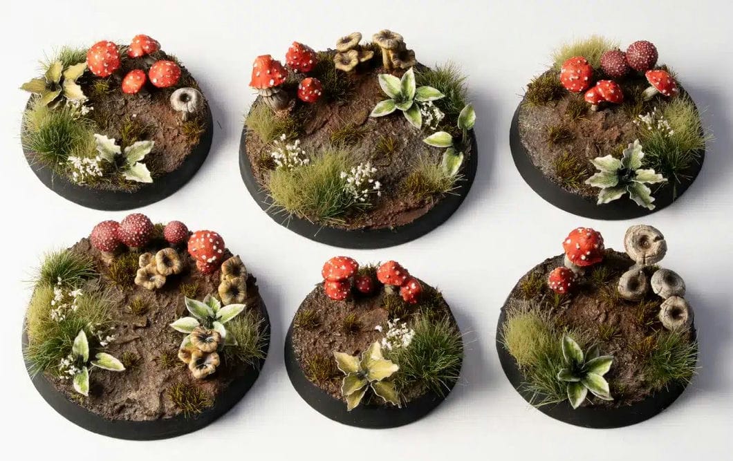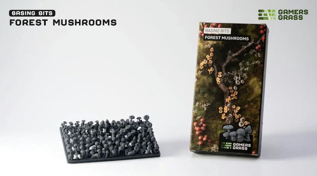 - Die Forest Mushrooms Basing Bits werden als vollständiger Gussrahmen mit über 100 Pilzen geliefert. In ultrahoher Auflösung 3D-gedruckt und außergewöhnlich detailreich gefertigt, bestehen diese Elemente aus hartem Harz. Sie wurden speziell dafür entwickelt, damit du magische Waldlandschaften, düstere Sümpfe und sogar tiefe, sporenverhangene Höhlenszenarien für die Bases und das Gelände deiner Tabletop-Miniaturen gestalten kannst. Der Gussrahmen enthält fünf unterschiedliche Pilzarten, die du ganz nach deiner kreativen Vision bemalen kannst.