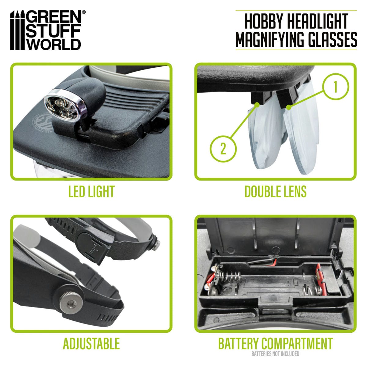 - Eine Lupenbrille mit LED-Licht ist ein unverzichtbares Hilfsmittel für Modellbau, Malarbeiten und andere Präzisionsaufgaben. Sie vergrößert kleine Details und sorgt dank integrierter Beleuchtung auch bei schlechten Lichtverhältnissen für optimale Sicht.