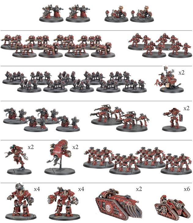In ihrem Innersten vereint diese Streitmacht das Beste, was der Kult des Mars zu bieten hat: Zwei Archmagos Prime thronen auf ihren Abeyants, während ihre Befehle von Myrmidonen, Tech-Priests und einer Legion kybernetischer Krieger ausgeführt werden. Von den präzisen Schlägen der Thallax und der erbarmungslosen Wucht der Ursarax bis hin zu den schwer gepanzerten Castellax und der zerstörerischen Feuerkraft der Thanatar – jede Einheit dient nur einem Ziel: der totalen Kriegsführung im Namen des Maschinengottes.