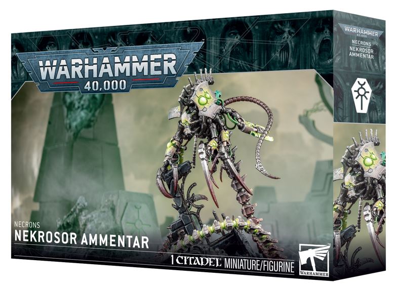 Nekrosor Ammentar ist eine derart furchteinflößende Gestalt, dass selbst die sonst so unerschütterlichen Necrons von Angst ergriffen werden. Seine bloße Präsenz ist der Ursprung einer mörderischen Psychose, die ganze Necron-Verbände mit sich reißt. Über viele Jahrhunderte hinweg wurde Nekrosor Ammentars Form immer weiter auf die Vernichtung organischen Lebens optimiert. Kryptomanten sahen sich gezwungen, stetig neue Modifikationen vorzunehmen, und so ist er heute mit klingenbewehrten Gliedmaßen, einem schlangenartigen Schwanz, Inimika-Projektoren – die es ihm erlauben, sich durch Schlachtfelder zu graben – sowie dem überwältigenden Vernichterhandschuh ausgestattet. Trotz dieser drastischen Veränderungen hat Nekrosor Ammentar seinen scharfen Verstand bewahrt und eine große Schar von Anhängern um sich gesammelt. Viele von ihnen stehen unter dem Fluch des Destruktors, während andere offenbar eigenen, finsteren Zielen folgen. Niemand vermag die wahren Motive dieses Necrons zu ergründen, der nun jene Region heimsucht, die dem Imperium als Ultramar bekannt ist.