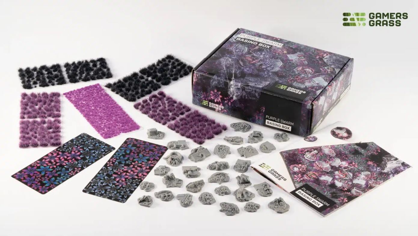 - Die Purple Swarm Basing Box wird deinen Miniaturarmeen einen Schauer über den Rücken jagen. In einer dunklen Ecke der Galaxis ist ein verlassenes Raumschiff oder eine Station zu einem Wunderwerk geworden – sicherlich durch die Hand der violetten einheimischen Exemplare, die auf diesem Planeten endemisch sind. Bei direkter Beobachtung scheinen alle in perfekter Symbiose zu leben und ein klares Ziel zu verfolgen: alles zu überfluten und zu verschlingen! Inmitten der Paneele und Metallböden bauen seltsame Kreaturen ihre Nester, verbreiten Ranken und Eier und legen den Grundstein für die seltsamen, leuchtenden Blumen, die unaufhörlich zu strahlen scheinen.