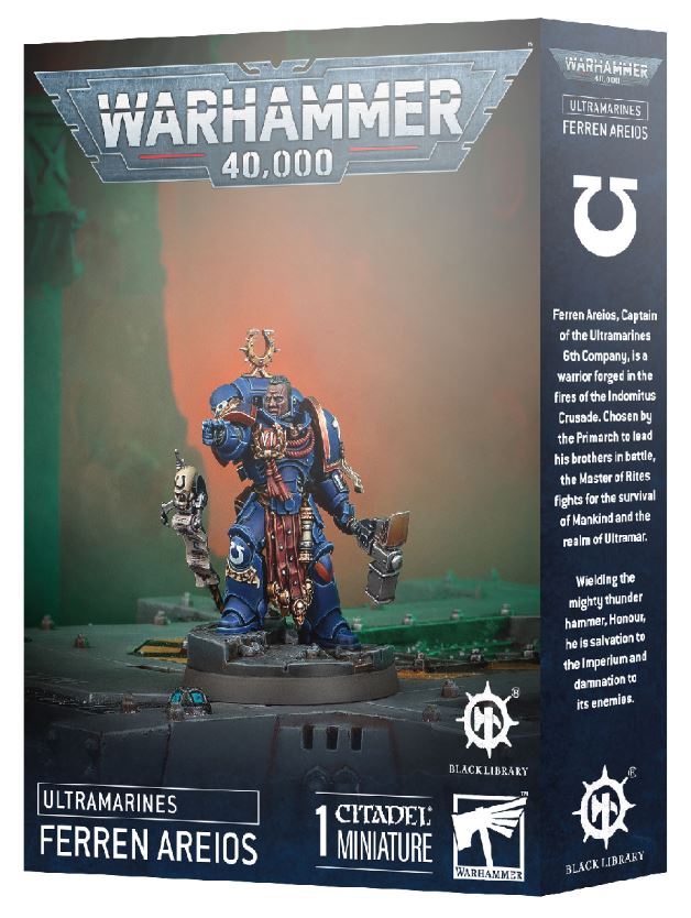 Der Captain der 6. Kompanie der Ultramarines, Ferren Areios, wurde im unerbittlichen Feuer des Indomitus-Kreuzzugs geschmiedet. Schon bald erscheint er als exklusive Miniatur der Black Library. Gleichzeitig kannst du ihn im Roman „Meister der Riten“ erleben, der ebenfalls diese Woche zur Vorbestellung bereitsteht.