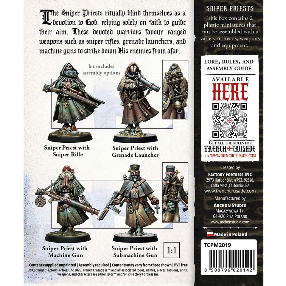 - Die Scharfschützenpriester von New Antioch sind die unangefochtenen Meister der Fernkampfkunst. Sie blenden sich rituell, um jegliche Zweifel auszuschließen, und zielen allein durch ihren Glauben an den Herrn, wodurch sie eine beispiellose Treffsicherheit erreichen, egal ob sie mit einem Scharfschützengewehr, einer schweren automatischen Waffe oder sogar einem Granatwerfer schießen.