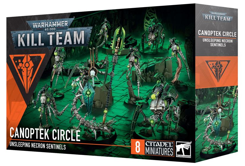 Verdrehe das Schlachtfeld selbst und lenke seine uralten Energien zu deinem Vorteil – mit dem Kanoptechzirkel-Kill-Team, das sich um den mächtigen Necron-Geomanten und seine gefügige Schar kanoptektischer Drohnen dreht.