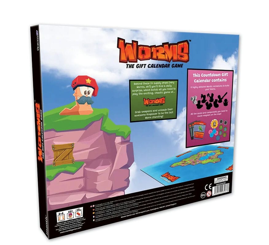 - Mit Worms™: The Gift Calendar Game öffnet sich jedes Dezember-Türchen und enthüllt eine neue Überraschung (Miniaturen, Würfel, Spielsteine und mehr), bis am 24. Tag dein komplettes Worms-Brettspiel-Erlebnis spielbereit ist.